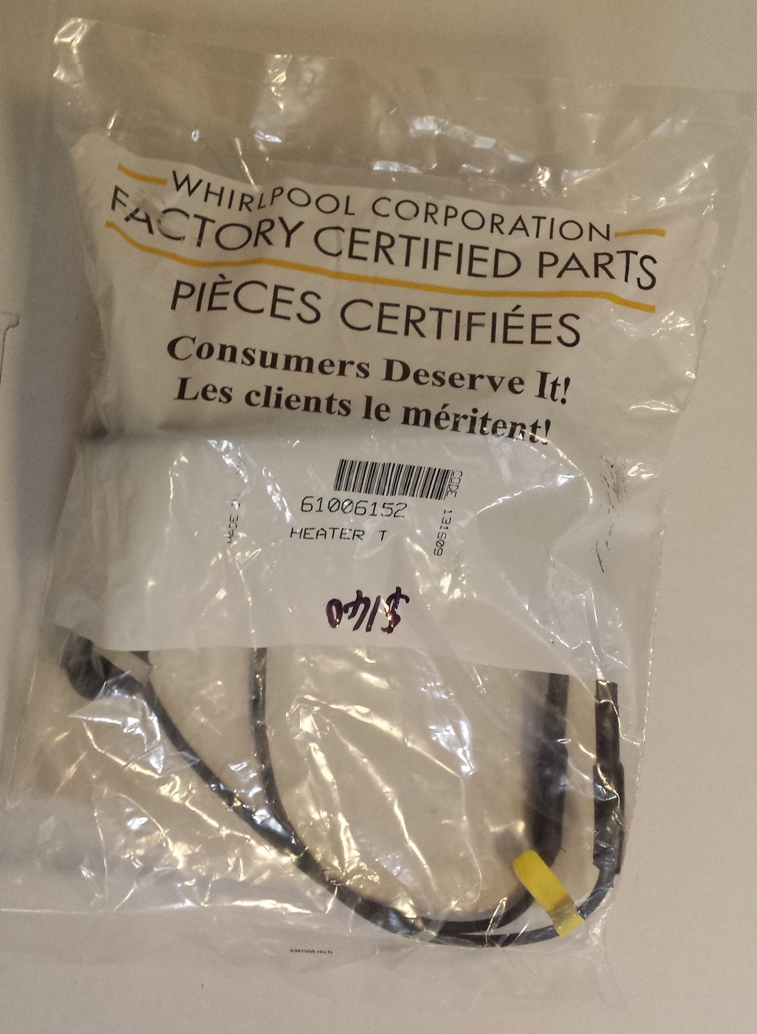 61006152 Defrost Heater element with Defrost Thermostat GENUINE PART 190mm long