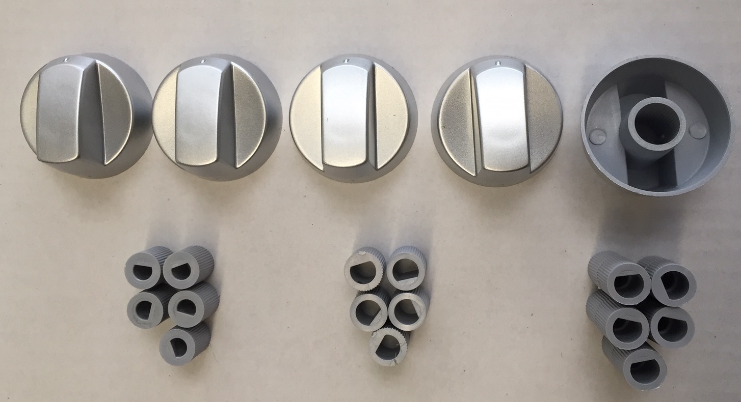 Set of 5x knobs with 3 different adaptor sizes.